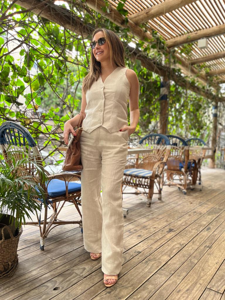 A Calça pantalona cós elástico, by SMR Anzanello, é tudo o que você precisa para ser uma mulher elegante e moderna. Confeccionado em tecido com toque de crepe de cor bege e preto; e linho de cor nature. Calça pantalona com corte de alfaiataria, elástico na parte de trás do cós, bolsos faca e zíper lateral. Para o dia a dia, ou para um evento a noite, você tem um look versátil para todos os momentos. Composição do tecido 94% poliéster e 06% elastano. Composição do tecido 100% linho.