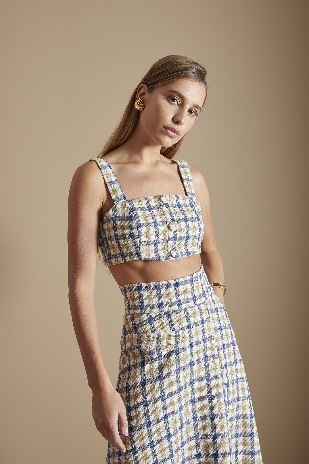 O Top e a Blusa Cropped, by Rosa Dahlia, é tudo o que você precisa para ser uma mulher elegante e moderna. Confeccionada em tecido com toque de tweed e corte de alfaiataria. Top e cropped com alças largas, botões forrador e zíper nas costas, fenda frontal e botões forrados. Para o dia a dia, ou para um evento a noite, você tem um look versátil para todos os momentos. Composição do tecido 80% poliéster e 20% lã.