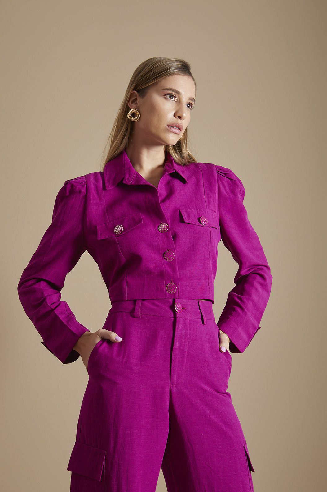 A Jaqueta Mellyna, by Rosa Dahlia, é tudo o que você precisa para ser uma mulher elegante e moderna. Confeccionada em tecido com toque de linho e corte de alfaiataria, de cor fúcsia. Jaqueta cropped com botões personalizados. Para o dia a dia, ou para um evento a noite, você tem um look versátil para todos os momentos. Composição do tecido 66% viscose e 34% linho.