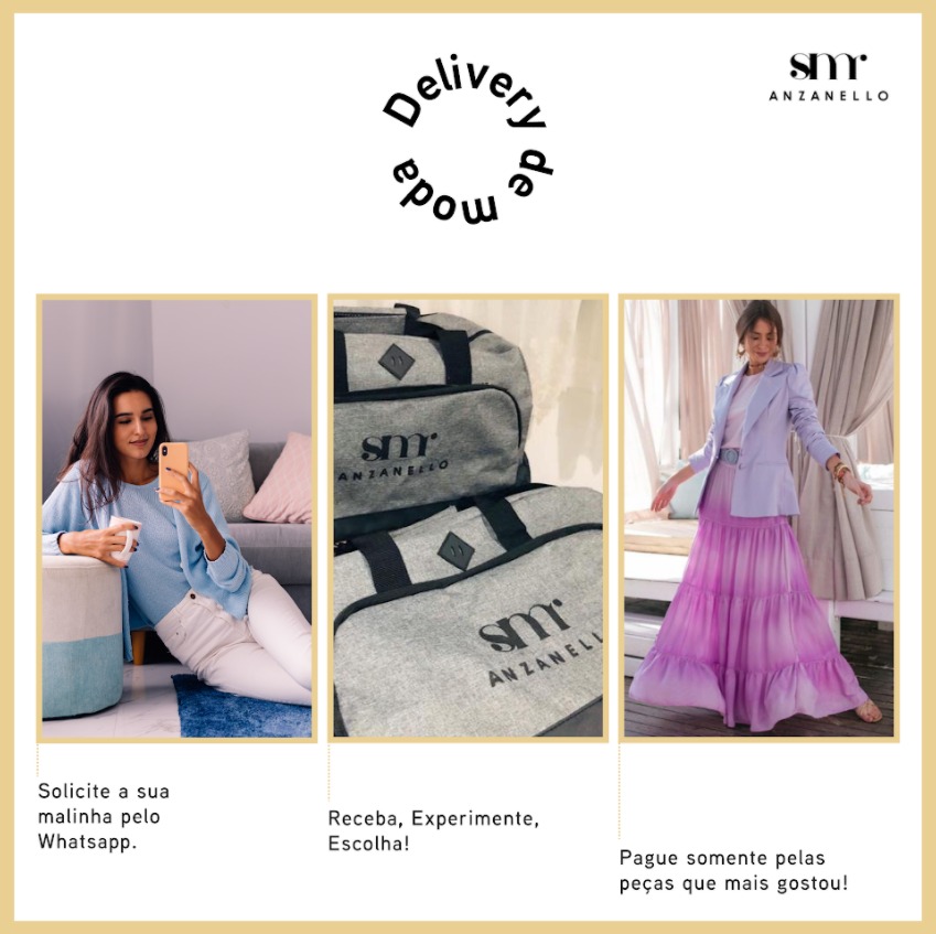 O delivery de moda é uma maneira de levar novidades SMR às clientes de Porto Alegre a partir da segunda venda. As peças são entregues em casa e a cliente pode provar sem pressa e com tranquilidade. Ela pode compor looks com outras peças do seu guarda-roupa, e ficando mais segura para decidir o que vai comprar.