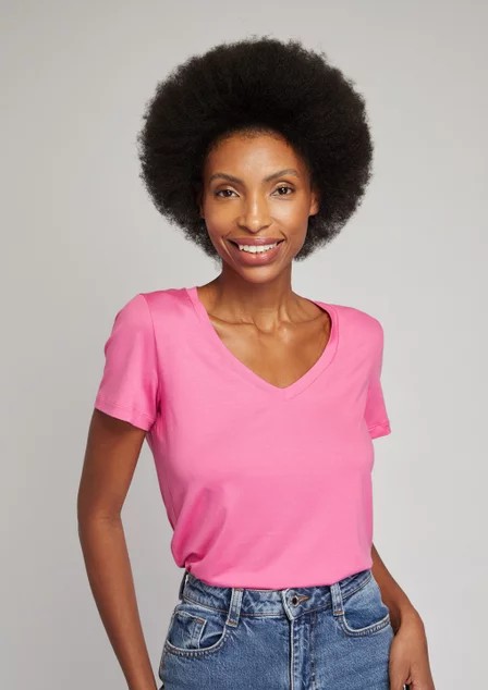 A blusa T-shirt Gola V Modal, by Lemon Basics, é tudo o que você precisa para ser uma mulher elegante e moderna. Confeccionada em tecido com toque de modal premium, de cor camellia Pink. Blusa t-shirt com gola V e tecido super confortável e macio. Perfeita para usar em ambientes de trabalho e para ousar com sobreposições de vestidos e regatas. Para o dia a dia, ou para um evento a noite, você tem um look versátil para todos os momentos. Composição do tecido 92% modal e 08% elastano.