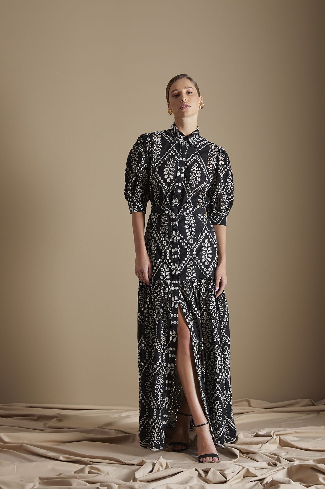 O Vestido Samanta, by Rosa Dahlia, é tudo o que você precisa para ser uma mulher elegante e moderna. Confeccionada em tecido com toque de algodão, de cor preta e corte de alfaiataria. Vestido longo com detalhes em broderi, mangas 3/4 puff, ele acompanha cinto na mesma estampa. Para o dia a dia, ou para um evento a noite, você tem um look versátil para todos os momentos. Composição do tecido 100% algodão.